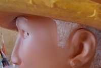 Peinture à l'aérographe et effet de matière feutrée sur le chapeau. Recherche de couleur pour le visage de Pharel Williams et mise en place de l'incorigible Droopy sur le chapeau pour un clin d'oeil entre les deux. Quand " La vieille école " rencontre la 3D d'aujourd'hui. J'ai adoré ce travail à faire .