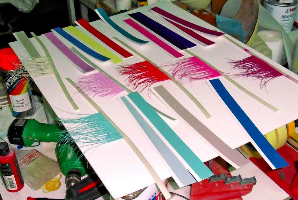 En collaboration avec les créateurs de Dior, sur la base des dessins et des croquis fournis, Xavier Boully teste et réalise différents effets de rendu en dégradé et expérimente plusieurs techniques et types de peintures. Pour lui, le challenge est la mise en couleur à l'aérographe des plumes et des cordons (les plumes devant garder le plus possible leur aspect naturel et leur souplesse).