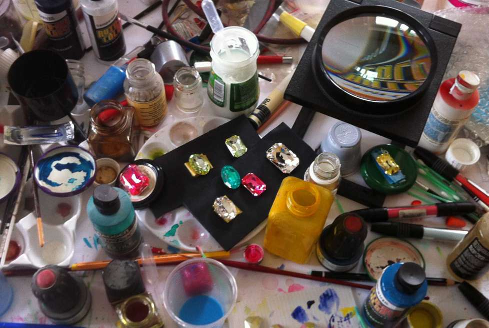 Peindre sur une surface lisse avec effet miroir en peinture transparente et garder la réflectance de celle ci avec une brillance par dessus, avec un impératif de couleur recherchée et un fini exemplaire. J'ai trouvé la technique et la manière de peindre avec des voiles de peintures à l'aérographe après quelques jours de recherche, gardant l'éclat de lumière, et aussi redessiné des vrais faux cristal en peinture sur des modèles originaux en verre .