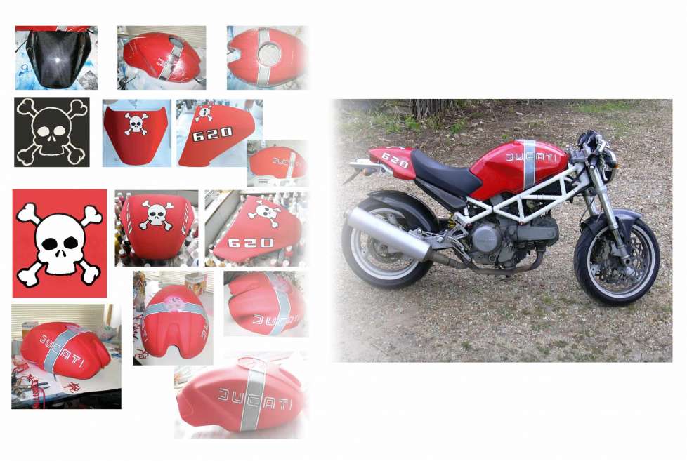 Moto Ducati : Un travail de précision avec sur les lettres des doubles filets  à respecter sans baver .