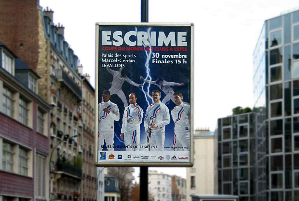 Xavier BOULLY : Cela fait maintenant 4 ans que je travaille dans l'escrime. J'ai été mis en relation grâce à mon travail effectué sur une décoration de Harley Davidson, que j'avais fais pour un client et qui connaissait le club de Levallois. A l'époque le LSC organisait la coupe du monde des clubs à l'épée. J'ai rencontré Frédérique DELPLA, organisateur de cette manifestation, qui voulait faire évoluer ce sport par une approche plus moderne et plus visuelle et avec qui j'ai fini par travaillé sur la coupe du monde des clubs à l'épée en 2002, 2003, et 2004.