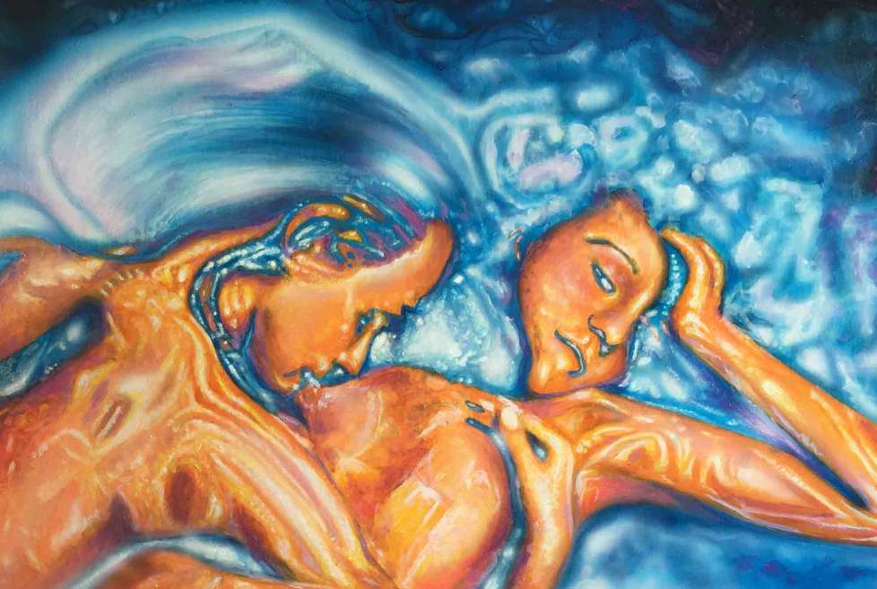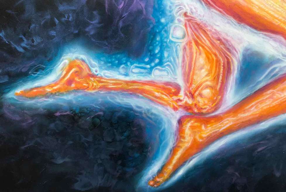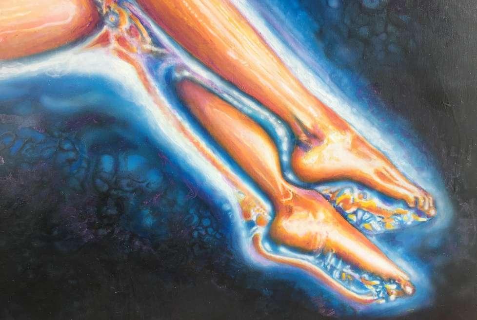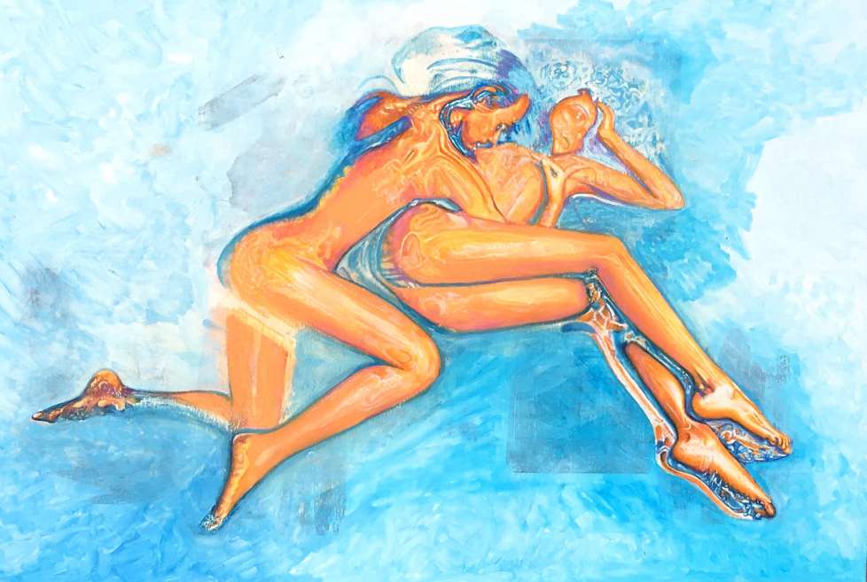 Réalisation d'une toile format à l'huile, brosse, pigment et aérographe.
