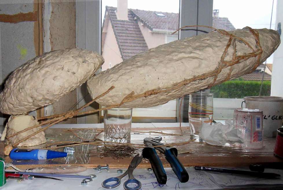 Reprenant le dessin fait sur toile, il faut traduire maintenant en volume cette grosse masse et lui donner de la finesse, de la légèreté, de la grâce et un envol vers la lumière .